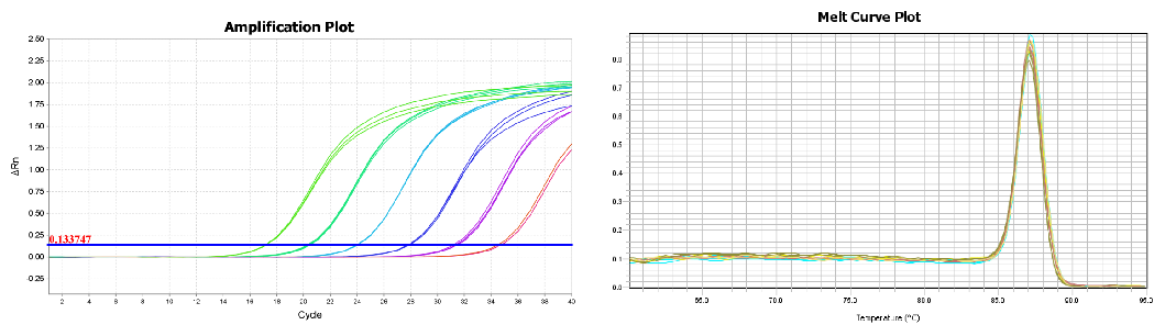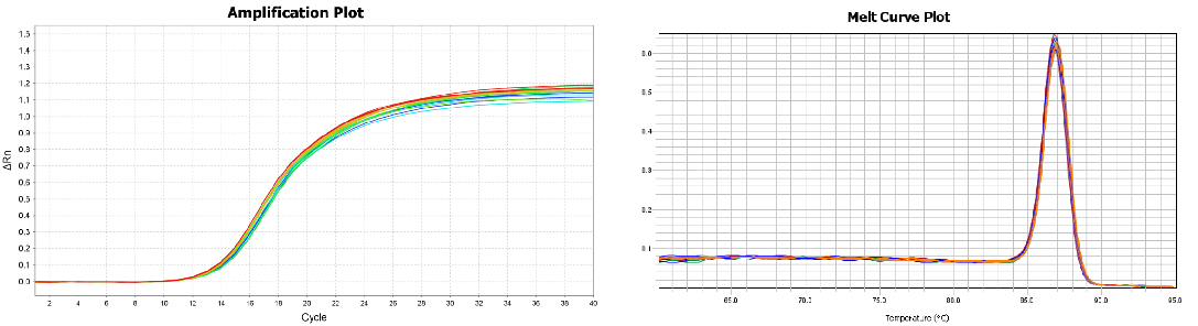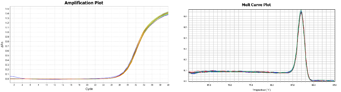 本制品是利用SYBR Green I嵌合熒光法進行qPCR的試劑盒,是一種2X premix型試劑,反應液配制十分簡,僅需加入引物、模板及RNase free water即可。本制品對SYBR Green I濃度、PCR反應體系都進行了優化,采用了反應性能優越的Pro Taq HS DNA polymerase 體系,能夠有效抑制非特異性產物的擴增,提高PCR擴增效率,可以進行高靈敏度的Real Time PCR反應,在寬廣的測量區域內得到良好的標準曲線,從而對靶基因進行準確定、檢測。