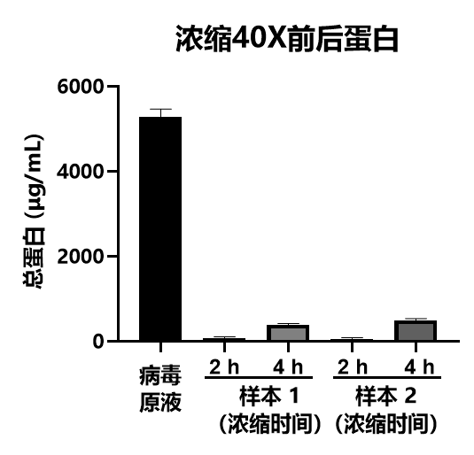2. 病毒濃縮效率高。使用本產(chǎn)品進(jìn)行濃縮,病毒回收率最高可達(dá)約90%,病毒損失量極少。